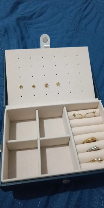 - Compartments: Ring slots on lid and multiple sections for small pieces