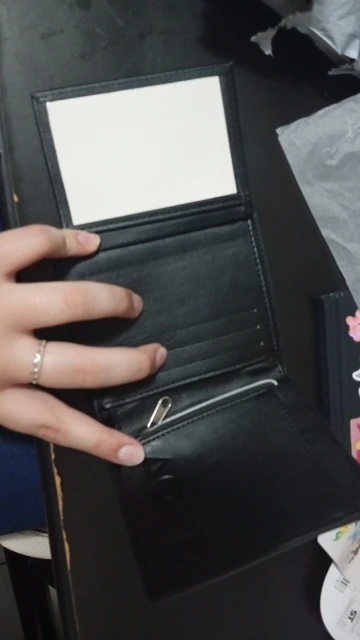 - Interior: Zipper pocket, coin pocket, note compartment, photo holder, and card holder