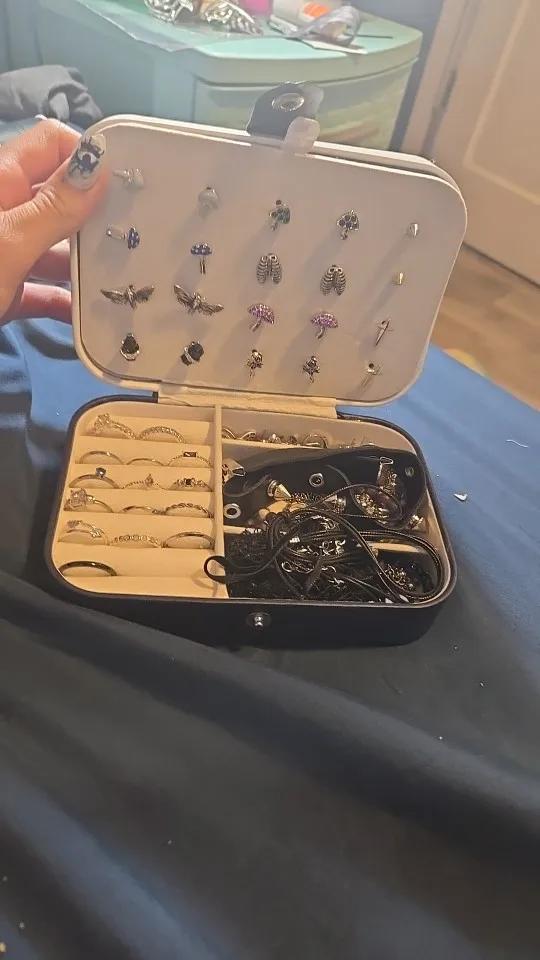 - Storage Layout: Ring rolls on one side with multiple slots and divider compartments on the other for bracelets and small items