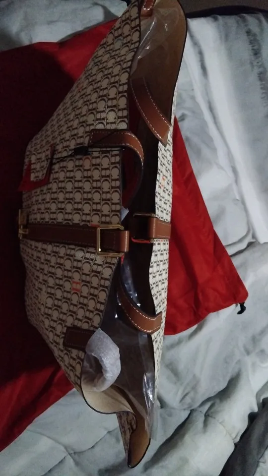 Elegant and versatile, this large-capacity tote blends a timeless letter-print motif with practical design for everyday use. Crafted with a durable PVC exterior and a cotton-lined interior, it offers generous space, a secure gold-tone clasp, and a bucket silhouette that holds your essentials with refined ease. The bag features sturdy handles, a center strap accent with hardware, and a minimalist, casual aesthetic that pairs with work, weekend, or travel ensembles.