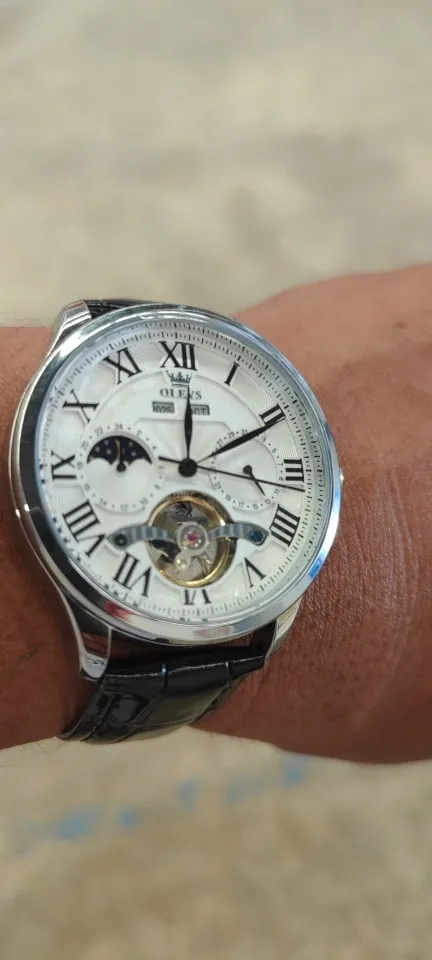 Experience the artistry of a Moon Phase mechanical watch that reveals its craftsmanship through a sculpted skeleton dial, a sweeping balance wheel, and Roman numeral indices. The self-winding movement ensures precise cadence for daily wear or formal occasions, while a durable case and coated glass dial window protect the intricate mechanism.