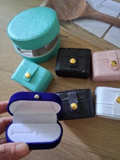- Compartments: Four cushioned ring slots and a space for small jewelry