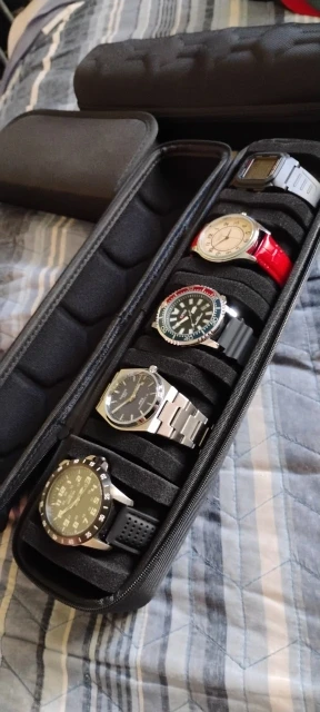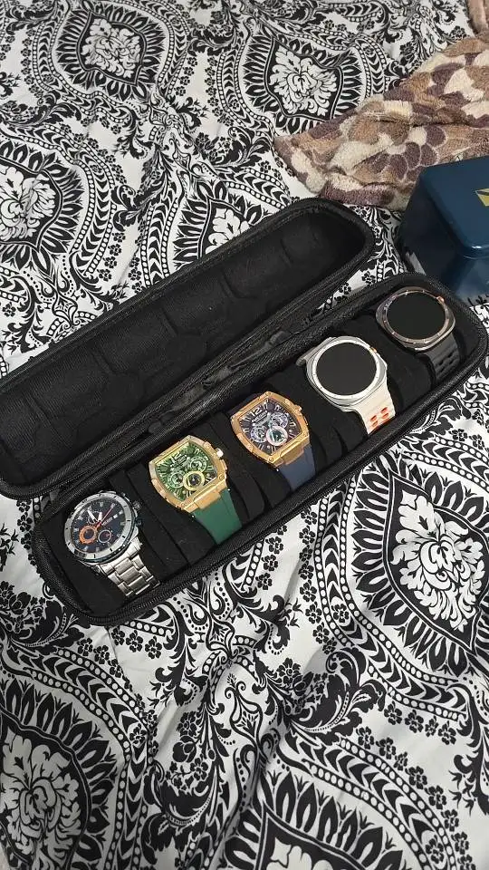 Designed as a premium travel companion, this hard-shell watch case preserves your collection in a protective, organized shell. The case features five slots with cushioned foam inserts and a sturdy exterior to shield watches from impact while on the go. A reliable flip-top closure keeps contents secure, while a compact rectangular form makes packing effortless. Gift-ready presentation adds a refined touch for gifting.