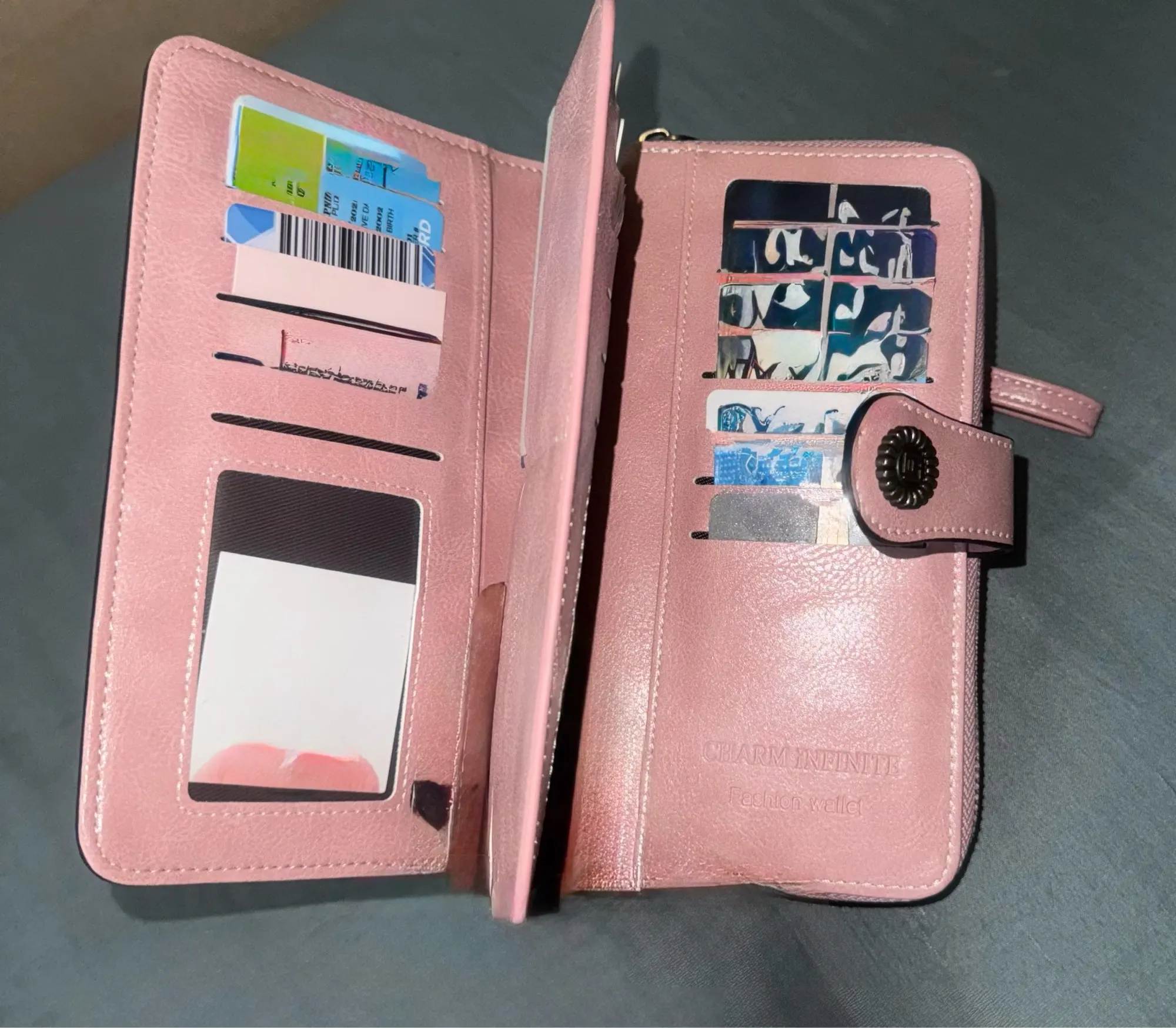 • Interior Pockets: Slot pockets, note compartment, photo holder