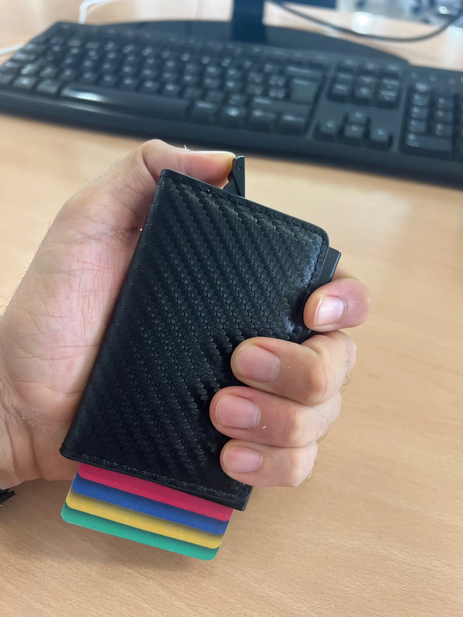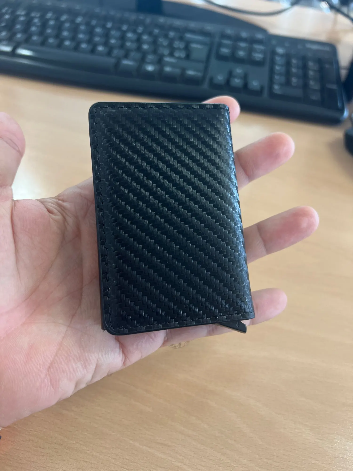 Experience a refined RFID shield cardholder that pairs a minimalist silhouette with practical security. Crafted with a PU exterior and a soft synthetic leather lining, this slim wallet keeps cards organized behind a dedicated card holder while protecting sensitive data from unauthorized scans. No zipper closure keeps the profile clean, while a discreet note compartment adds versatile storage for receipts or notes.