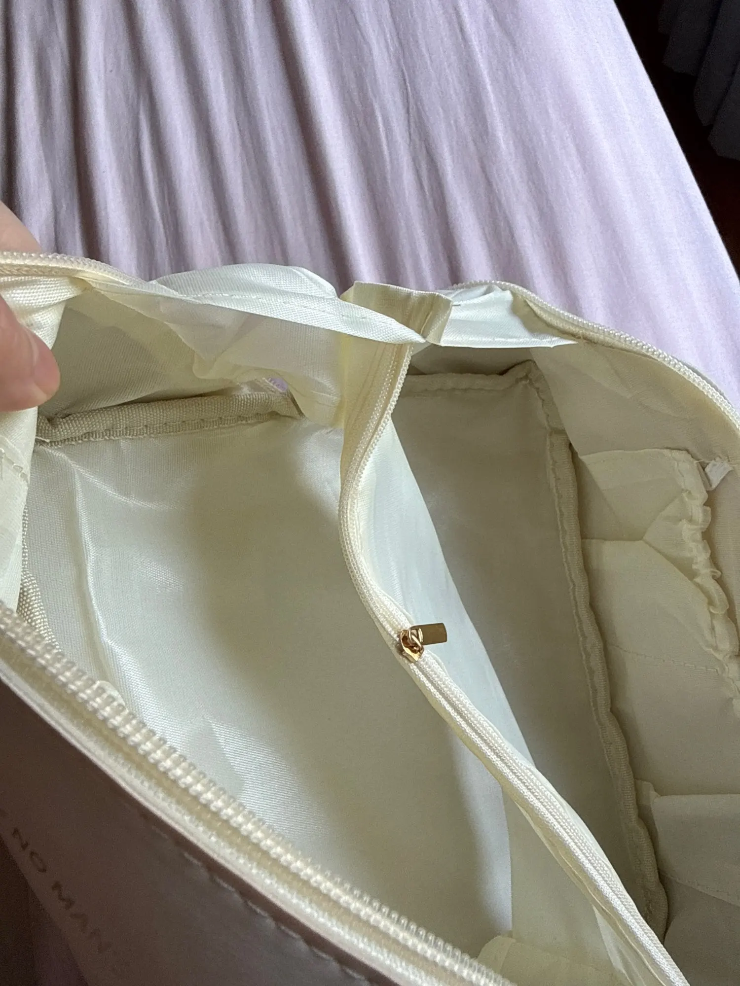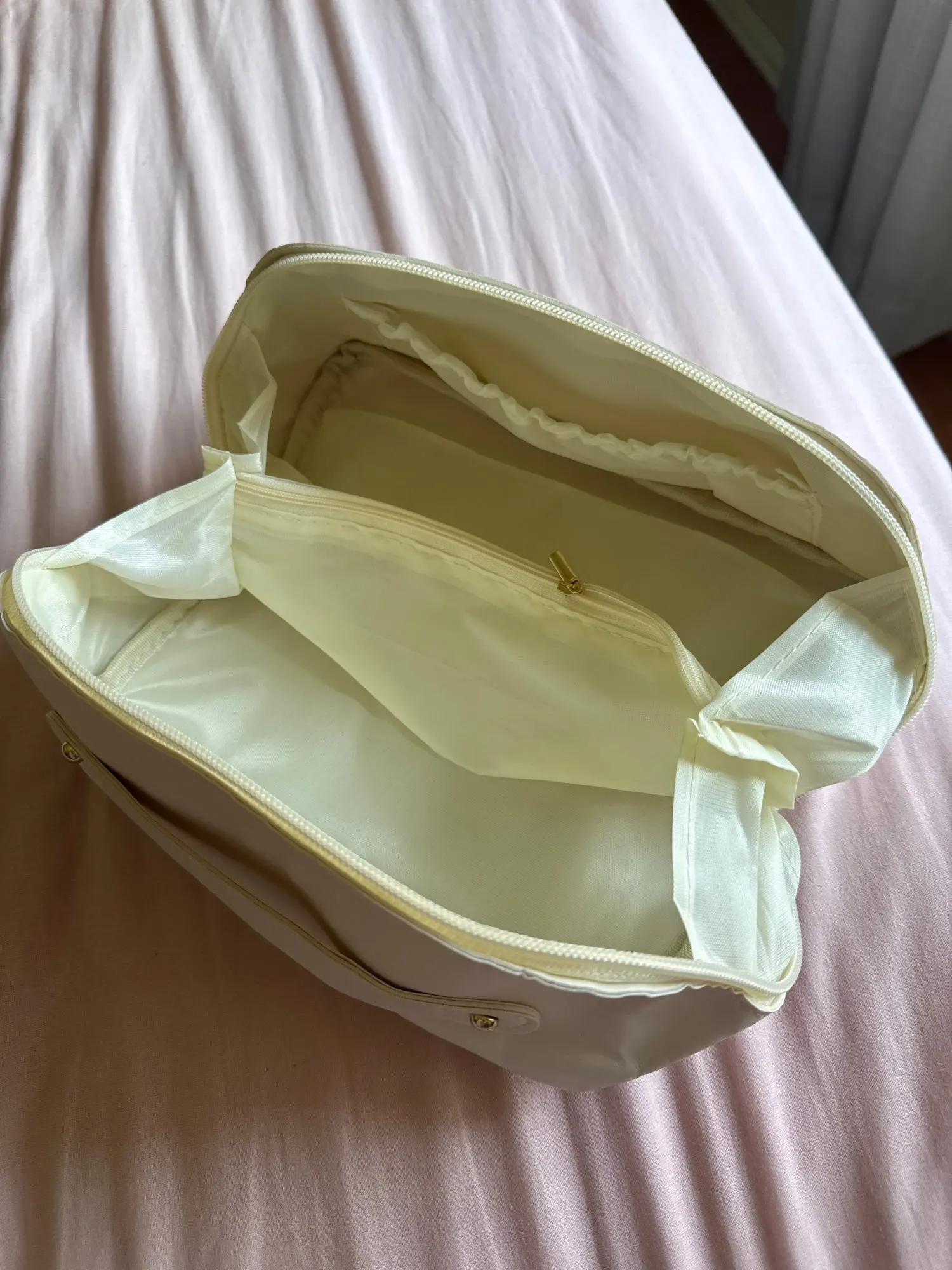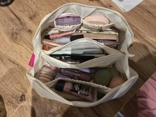 - Organization: multiple elastic pockets and a central zip compartment for separation