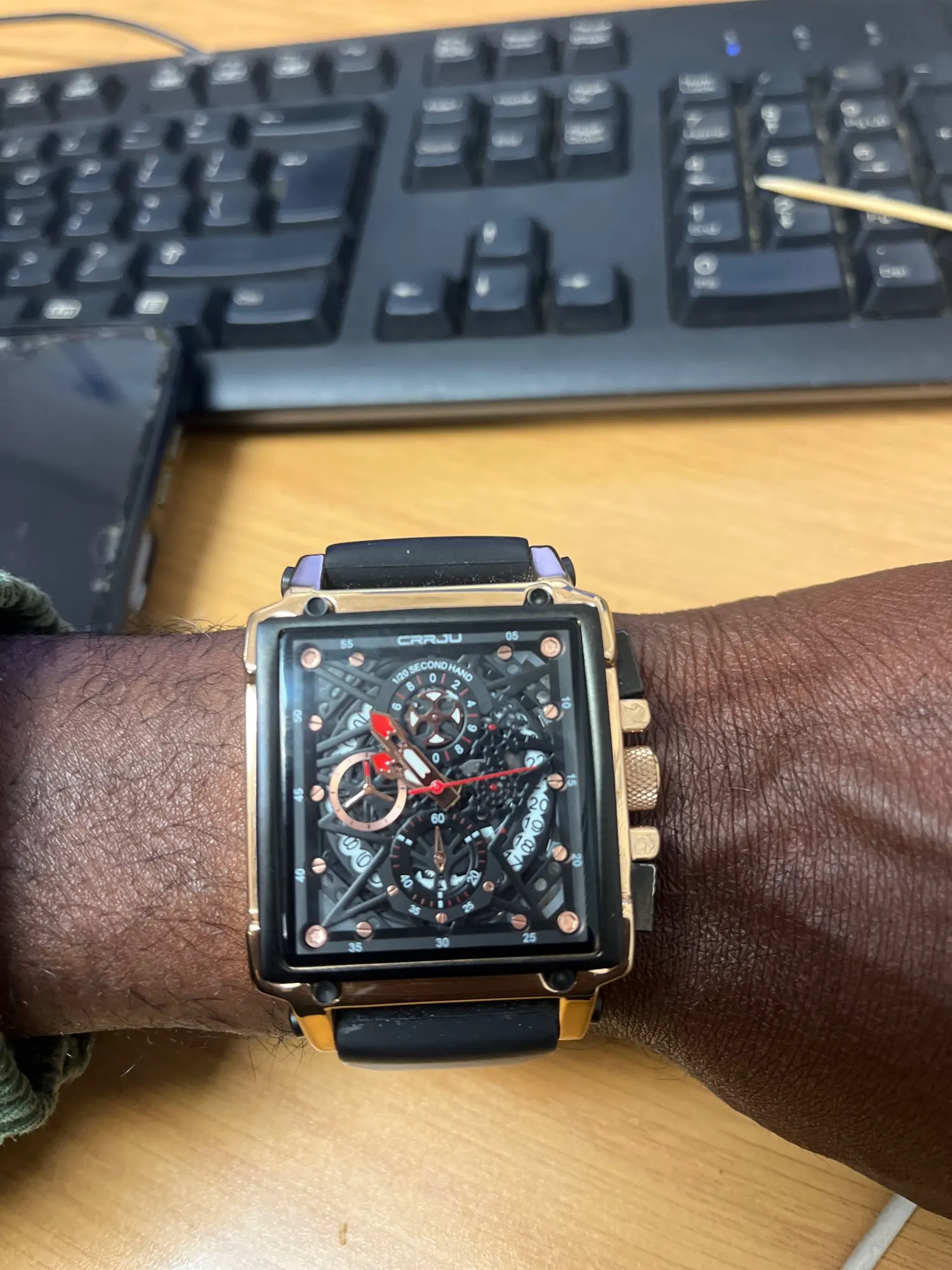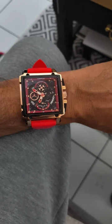 Architectural square silhouette houses a precise quartz chronograph with a layered dial, revealing subtle gears beneath a structured, high-contrast frame. The alloy case provides a bold, durable cabin while a hardlex dial window protects the display and maintains clarity. A silicone strap offers daily comfort and a contemporary silhouette suitable for both work and weekend wear.